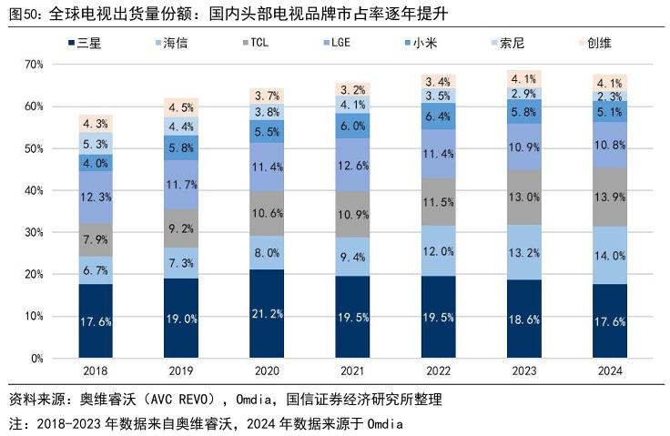 事后回看,这个判断还真不是谦虚。此后一年,TCL、海信的全球出货量先后超过LG;2024年四季度,TCL还在全球高端电视出货量首次超越LG。
